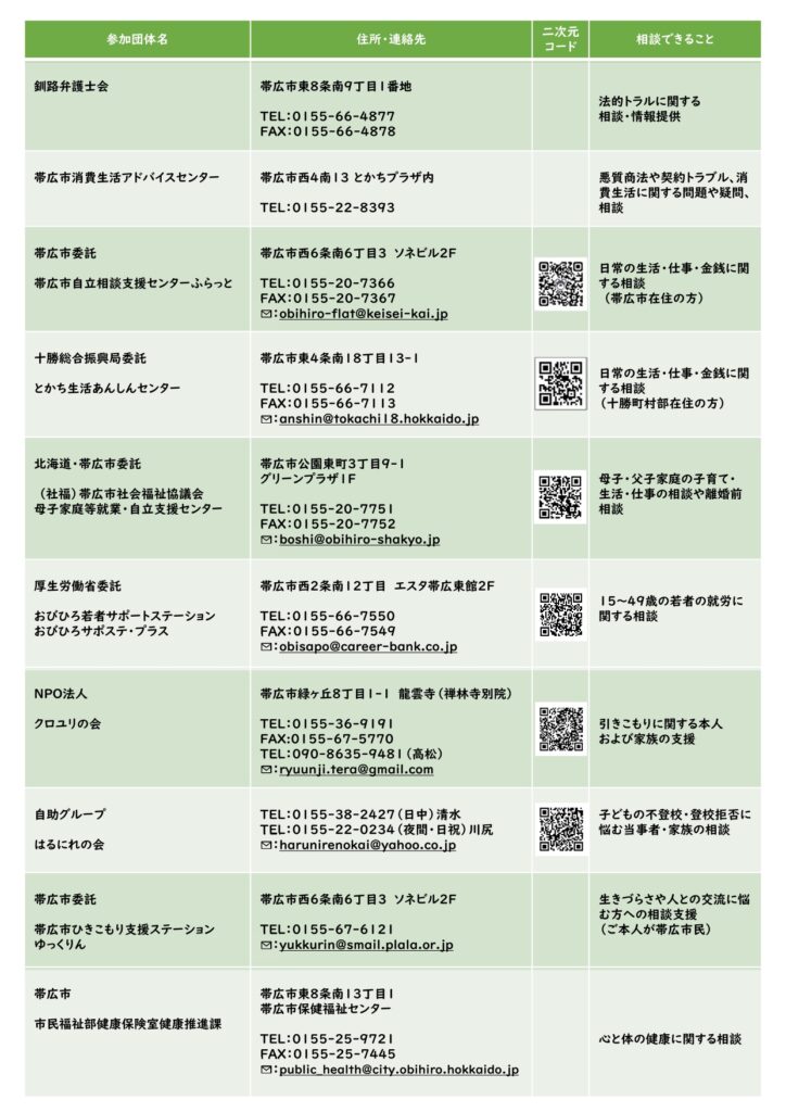 十勝管内の9機関による相談会を開催します。入場、相談は無料。予約を優先します。