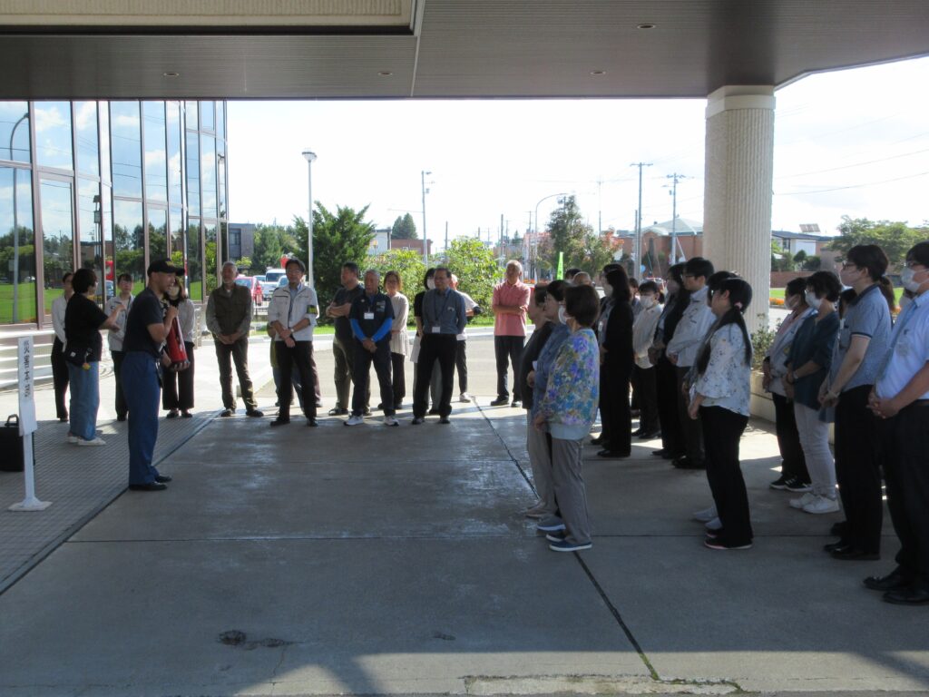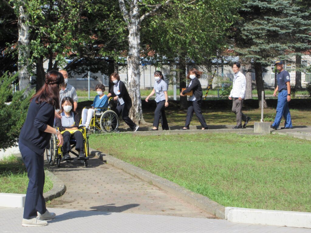 訓練の内容は、9月26日午前11時、十勝地方を襲ったマグニチュード8の大規模地震により施設が一部損傷し、1階湯沸室から火災が発生したという想定で総合訓練を実施しました。