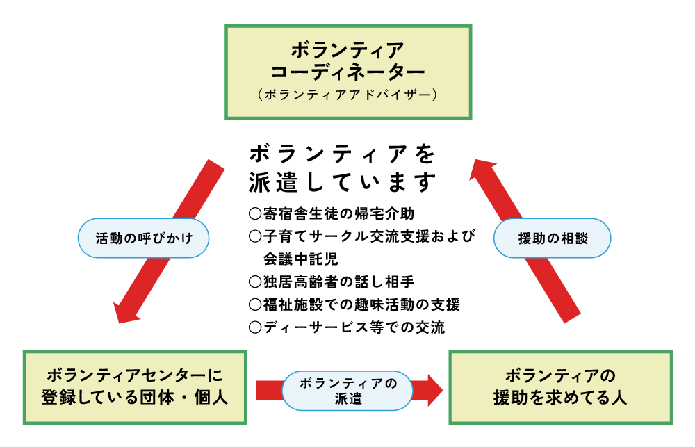 - これからボランティア活動をしてみたい人、ボランティアの支援を求めている市民の「相談窓口」です。